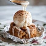 7. Cool and Serve: Remove the packets from the heat and allow them to cool for about 10 minutes. Carefully open the foil, as the contents will be hot. Optionally, top with a scoop of ice cream before serving and enjoy your delicious apple pie packets.