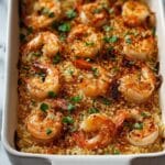 This Baked Stuffed Shrimp Casserole is a delicious, gluten-free seafood dish featuring succulent shrimp topped with a flavorful mixture of Parmesan cheese, garlic, fresh parsley, and olive oil, baked to perfection with a golden breadcrumb crust. Perfect for an elegant dinner or special occasion, this easy recipe combines tender shrimp with a savory, herb-infused crust for a delightful blend of textures and flavors.