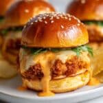 These Bang Bang Chicken Sliders combine crispy fried chicken cutlets coated in panko breadcrumbs with a spicy, creamy Bang Bang sauce, melted mozzarella cheese, and fresh slider buns. Perfect as a flavorful appetizer or a fun game day or party snack, these sliders offer a delicious mix of textures and bold flavors with a slight kick of heat.