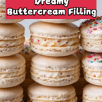 Keywords: birthday cake macarons, macaron recipe, French macarons, birthday dessert, almond meringue, buttercream filling, festive macarons, rainbow sprinkles