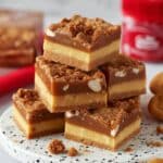 Decadent Biscoff Blondies feature a rich, buttery batter swirled with indulgent Biscoff spread and studded with crunchy Biscoff biscuits and sweet white chocolate chips. These chewy, golden blondies are perfectly baked to have a slight wobble in the center, creating a soft and gooey texture that’s irresistible for Biscoff lovers and dessert fans alike.