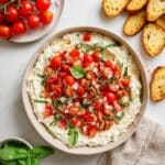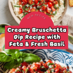 Keywords: Bruschetta dip, tomato dip, feta cheese dip, creamy appetizer, Italian dip, party snack, basil dip