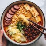 Store leftover Budae Jjigae in an airtight container in the refrigerator for up to 3 days. Reheat gently on the stovetop over low heat, stirring occasionally. Add additional broth or water if the stew thickens too much. It’s best consumed fresh as noodles can become soggy after storage.