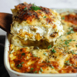 This Butternut Squash, Mushroom & Spinach Lasagna is a delicious vegetarian twist on classic lasagna, featuring roasted butternut squash, sautéed mushrooms, and fresh spinach layered with creamy cauliflower-based sauce and ricotta filling. Perfectly seasoned and topped with mozzarella and asiago cheese, it’s a hearty and comforting dish that satisfies with a healthy vegetable boost.