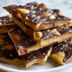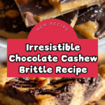 This Chocolate Cashew Brittle recipe features crunchy caramelized cashews coated in a crisp sugar syrup and elegantly drizzled with melted chocolate, creating a perfect combination of sweet, salty, and nutty flavors. Ideal for a delightful homemade treat, this brittle balances buttery richness with a touch of Himalayan pink salt for an irresistible snack or gift.