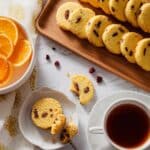 Keywords: shortbread cookies, cranberry cookies, melted butter cookies, rosemary shortbread, holiday cookies, slice and bake, orange zest cookies