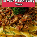 This Creamy Parmesan Beef Linguine with Garlic Butter Sauce is a hearty and comforting pasta dish featuring tender ground beef simmered in a rich, cheesy sauce. The combination of garlic, buttery onions, and Parmesan cheese creates a velvety sauce that perfectly coats the al dente linguine, making it an indulgent yet easy-to-make weeknight dinner.