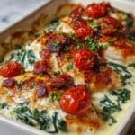 This Creamy Tuscan Chicken Cottage Cheese Bake is a comforting and flavorful dish that combines tender chicken with fresh spinach, tomatoes, and a blend of cheeses. It’s easy to prepare and perfect for a cozy dinner any night of the week.