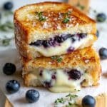 This Crispy Blueberry Grilled Cheese offers a delightful twist on a classic comfort food. Sweet and tangy blueberry lemon thyme jam pairs beautifully with melted white cheddar and mozzarella on crispy sourdough bread. It’s a perfect balance of savory and fruity flavors for an easy, satisfying meal.