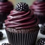 These Dark Chocolate Blackberry Cupcakes combine rich, intense cocoa flavor with the fresh tartness of blackberries for a delightful treat. Topped with creamy chocolate frosting and elegant chocolate shavings, they make a perfect dessert for any occasion.