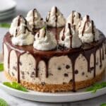 This Decadent No Bake Cookie Dough Cheesecake combines a crunchy graham cracker crust with layers of creamy no-bake cheesecake and edible chocolate chip cookie dough. Perfectly chilled and topped with cookie dough crumbles and mini chocolate chips, this dessert is a luscious treat that requires no baking, making it simple yet indulgent.