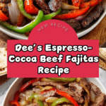 Dee’s Original Fajitas feature tender skirt, flank, flap, or flat iron beef rubbed with a bold espresso-cocoa spice mix, seared to perfection, and paired with vibrant, citrus-marinated poblano peppers, sweet onions, and colorful bell peppers. Served sizzling hot with classic fajita accompaniments, this recipe offers a flavorful, slightly smoky twist on traditional fajitas perfect for a lively family meal or entertaining friends.