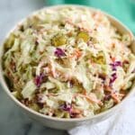 Keywords: dill pickle coleslaw, coleslaw recipe, pickle coleslaw, creamy coleslaw, dill pickle salad, side dish, summer salad