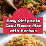 Keywords: Keto, cauliflower rice, venison, low carb, dirty rice, ground meat, paleo-friendly, ketogenic, gluten free