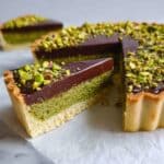 Keywords: Chocolate tart, pistachio kataifi tart, Middle Eastern dessert, gelatin chocolate namelaka, pistachio cream tart, no-bake tart, elegant chocolate dessert