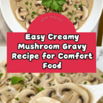Keywords: mushroom gravy, easy gravy recipe, creamy mushroom sauce, vegetarian gravy, mushroom sauce for mashed potatoes