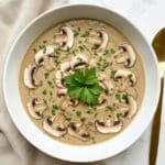 This Easy Mushroom Gravy recipe is a rich and creamy sauce made from sautéed baby bella mushrooms, onions, garlic, and a smooth roux thickened with vegetable broth and enhanced with fresh thyme and cream. Perfect for elevating mashed potatoes, meats, pasta, or roasted vegetables with its deep umami flavor and simple preparation.