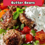 Keywords: lamb meatballs, baked meatballs, feta cheese, Mediterranean recipe, butter beans, easy dinner, oven-baked