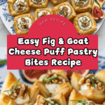 These Fig & Goat Cheese Puff Pastry Bites are elegant yet simple appetizers perfect for any occasion. With sweet fig jam, tangy goat cheese, and crunchy nuts nestled in flaky pastry, they offer a delightful mix of flavors and textures. They’re sure to impress guests or satisfy your own cravings.