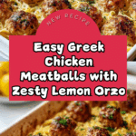 This flavorful Greek Chicken Meatballs with Lemon Orzo recipe combines tender, aromatic chicken meatballs with a bright, zesty lemon-infused orzo pasta. The meatballs are seasoned with classic Mediterranean herbs, feta cheese, and garlic, pan-seared to a golden brown for a deliciously moist interior. The creamy lemon orzo complements the dish perfectly, making it a satisfying and fresh Mediterranean-inspired meal perfect for any weeknight or special occasion.
