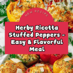 These Herby Ricotta Stuffed Peppers are a delicious and comforting vegetarian dish featuring tender baked bell peppers filled with a savory mixture of ricotta, spinach, fresh herbs, and cheeses. Topped with a crispy breadcrumb crust, this recipe is perfect for a wholesome dinner that highlights fresh flavors and simple ingredients.