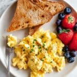 This high protein scrambled eggs recipe combines the creamy texture of cottage cheese with fluffy eggs for a satisfying and nutritious breakfast. It’s quick to make and perfect for a busy morning or a protein boost any time of day.