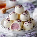 Keywords: honey lavender white chocolate truffles, floral truffles, homemade white chocolate truffles, lavender infused sweets, easy truffle recipe