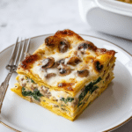 A delicious and healthy Invisible Butternut Squash Spinach Mushroom Lasagna that uses thinly sliced butternut squash in place of traditional pasta sheets. This gluten-free and vegetarian dish layers sautéed spinach and mushrooms with a creamy Boursin cheese mixture, baked until golden and tender for a comforting, low-carb twist on classic lasagna.