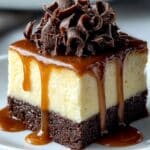 This Irresistible Caramel Brownie Cheesecake is a decadent dessert combining rich chocolate brownie, creamy cheesecake, and luscious caramel sauce. Perfect for special occasions or whenever you crave a truly indulgent treat.