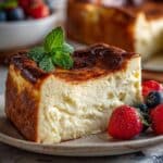 A light and fluffy Japanese cheesecake, also known as chizu keki, known for its delicate texture and subtle sweetness. This recipe uses a water bath baking method to achieve its signature spongy and creamy consistency, enhanced with a hint of yuzu for a refreshing citrus note. Perfectly topped with fresh strawberries, blueberries, and mint leaves, it makes a delightful dessert for any occasion.