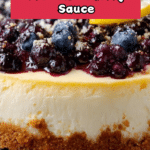 Keywords: lemon blueberry cheesecake, cheesecake recipe, blueberry sauce, graham cracker crust, baked cheesecake, lemon dessert