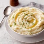 - Serve: Serve the mashed potatoes warm, garnished with finely chopped chives, a drizzle of olive oil, and a sprinkle of freshly ground pepper.