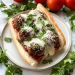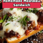 This meatball sandwich is a hearty and flavorful meal perfect for lunch or dinner. Juicy beef meatballs simmered in a rich marinara sauce are nestled inside a warm baguette with melted cheese and fresh parsley. It’s a comforting dish that’s easy to make and sure to satisfy.