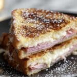 Keywords: Monte Cristo, ham and turkey sandwich, fried sandwich, Swiss cheese sandwich, brunch recipes, savory and sweet sandwich