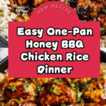 Keywords: one-pan, honey BBQ chicken, chicken and rice, skillet meal, easy dinner, quick chicken recipe, one-pot meal