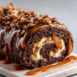 This Irresistible Peanut Butter Cup Chocolate Roll combines a light, airy chocolate sponge cake with a creamy peanut butter filling studded with peanut butter cups. Finished optionally with a silky chocolate ganache, it’s a delightful treat perfect for any occasion.