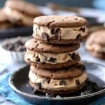 Delight in these homemade Peanut Butter-Filled Chocolate Sandwich Cookies featuring rich semisweet chocolate cookie shells filled with a smooth, creamy peanut butter frosting studded with mini chocolate chips. Perfectly soft with a slight crackle on the edges, these sandwich cookies are an irresistible treat for chocolate and peanut butter lovers alike.