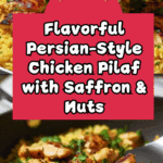 This Persian-Style Chicken Pilaf is a fragrant and flavorful dish featuring tender chicken thighs cooked with aromatic spices, saffron-infused basmati rice, and a delightful mix of dried fruit and nuts. Enhanced with toasted almonds, pistachios, and fresh herbs, this pilaf offers a balanced blend of savory and sweet notes perfect for a comforting meal.