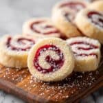 Raspberry Swirl Shortbread Cookies are buttery, tender cookies with a generous layer of sweet and tangy raspberry jam swirled between a smooth shortbread base and crumbly topping. These delightful treats are perfect for tea time or any occasion requiring a sweet and elegant cookie.