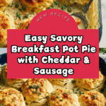 Start your day with a comforting and flavorful Savory Breakfast Pot Pie. This dish combines creamy sausage gravy, tender scrambled eggs, sautéed vegetables, and a fluffy biscuit topping for a hearty morning treat that feels like a warm hug.