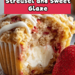 These Strawberry Cream Cheese Muffins with Streusel Crumb Topping are a delightful treat combining soft, fruity muffins with a rich cream cheese center and a crunchy, buttery topping. Perfect for breakfast or an afternoon snack, they bring together fresh strawberries and a sweet glaze for a truly irresistible dessert.