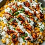 - Step 9: Layer the sliced chicken on top of the rice, then add a generous scoop of the street corn mixture.