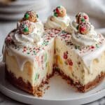 This recipe creates a delightful sugar cookie base and crumble topping, perfect for cheesecake crusts or enjoyed on their own as a festive dessert. With a tender, buttery sugar cookie crust and a crunchy, sweet crumble sprinkled with colorful Christmas jimmies, it’s a versatile and delicious treat for any occasion.