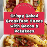 These Tasty Baked Breakfast Tacos combine crispy oven-baked bacon, seasoned sautéed potatoes, creamy scrambled eggs, and melted Monterey Jack cheese in warm corn tortillas. Perfect for a hearty and flavorful morning meal, they are easy to prepare and bake together for a delicious breakfast treat.