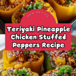 These Teriyaki Pineapple Chicken and Rice Stuffed Peppers combine juicy bell peppers filled with a flavorful mixture of shredded chicken, teriyaki sauce, sweet pineapple, and rice. Baked to perfection and optionally topped with melted cheese, this dish offers a delicious balance of savory and sweet flavors in a wholesome, colorful meal perfect for dinner.