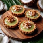 9. Cool and Garnish: Allow the tarts to cool completely before removing them from the pans. Sprinkle the toasted coconut flakes over the top to add a crunchy texture and enhance the coconut flavor.