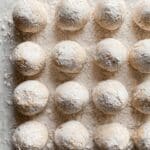 Toasted Almond Snowballs are delicate, buttery cookies featuring toasted almond flour for a rich, nutty flavor. These melt-in-your-mouth snowball cookies are coated generously with confectioners’ sugar, offering a sweet, crumbly texture perfect for festive occasions or an everyday treat.