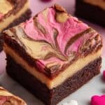 Valentine Brookies combine rich, fudgy brownies with soft, vibrant pink sugar cookie swirls, creating a festive and delicious treat perfect for Valentine’s Day or any special occasion. This recipe features a marbled pattern with sweet, buttery sugar cookie dough atop a dense chocolate brownie base, finished with optional heart-shaped sprinkles for a charming touch.